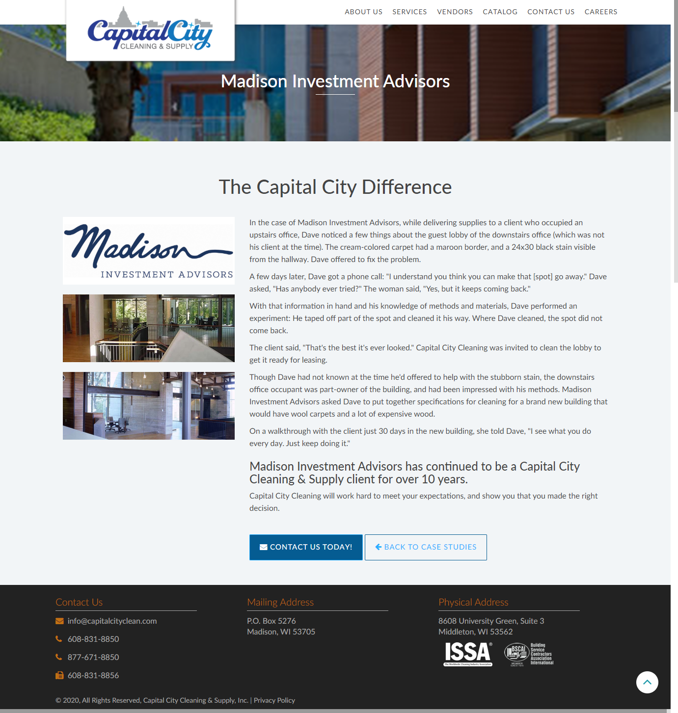 Capital City Cleaning wanted to show their connection to their local clientele and provide a way for the site visitors to discover Capital City's services, products and how to connect online when the visitor had questions.